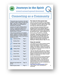 This resource is to be used to facilitate activities that link the meeting's provision for young people aged between 12 and 18 with the wider meeting. This material is written to be used by the meeting as a set of community activities (for all ages from 12 onwards). There are two parts to this resource. The first is for older and younger generations to share where they are coming from and the second is for them then to work together on activities that will enable a shared journey as a community.